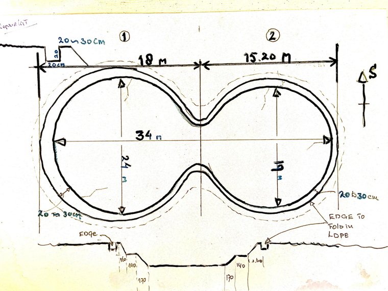 บ่อสวนจัดน้ำ ภายในพื้นที่สวนตัว ที่ขุดไว้เป็นรูปทรงคล้ายเลข 8 เพื่อใช้งานจัดสวนตกแต่งพื้นที่ เนื่องจากพื้นที่ไม่สามารถกักเก็บน้ำได้