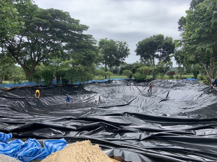 บ่อน้ำจาก Mr.Marcel Dubbelman อ.ปากช่อง จ.นครราชศรีมา กับการใช้งานผืนพลาสติก LLDPE ความหนา 0.5 มิลลิเมตร (500 ไมครอน) ในการปูบ่อ