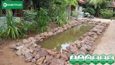 แต่ถ้าหากยังไม่ได้เก็บขอบบ่อให้เนียบ ๆ พลาสติก ยังเปิดให้เห็นอยู่ โดนแสงแดดอยู่