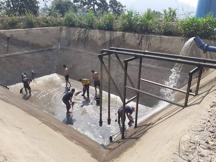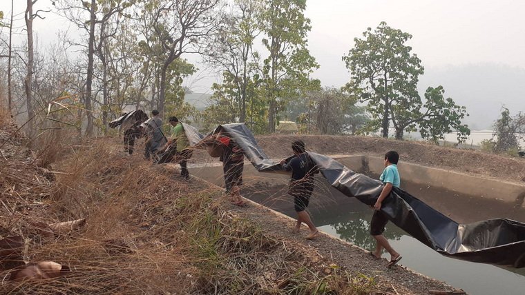บ่อน้ำของมหาวิทยาลัยราชภัฎเชียงใหม่ วิทยาเขตแม่ฮ่องสอน ปูทับบ่อปูนเดิมด้วย ผืนพลาสติก LDPE ความหนา 0.30 มิลลิเมตร (300 ไมครอน) ขนาด 25x32 เมตร