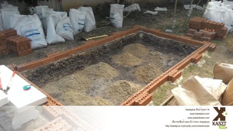 แล้วก็จะได้บ่ออิฐประสานสำหรับการใช้งานเลี้ยงปลาคราฟ ที่มีความลึกของน้ำเพียงพอสำหรับการเลี้ยงค่า
