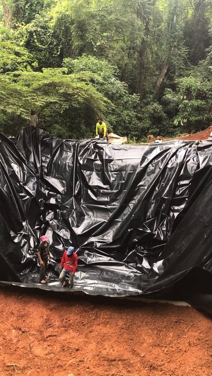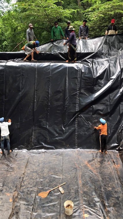 บ่อปูนร้าว หาจุดซ่อมไม่เจอ ซ่อมเท่าไรก็ไม่จบ ซ่อมบ่อเพื่อใช้งานต่อด้วย พลาสติก LDPE บ่อน้ำตั้งอยู่ที่จังหวัดเชียงราย บนพื้นที่ภูเขาสูง
