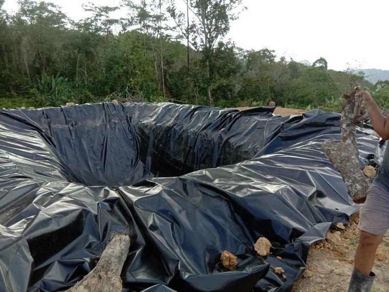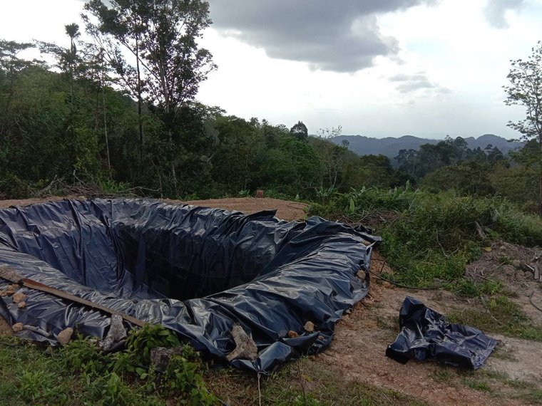 บ่อพักน้ำ พื้นที่ภูเขา จากจังหวัดนครศรีธรรมราช ใช้งานอยู่กับบ่อที่อยู่บนพื้นที่สูง และการขนส่งขึ้นไปลำบาก แต่ผืนพลาสติก LDPE สามารถขนส่งขึ้นไปได้
