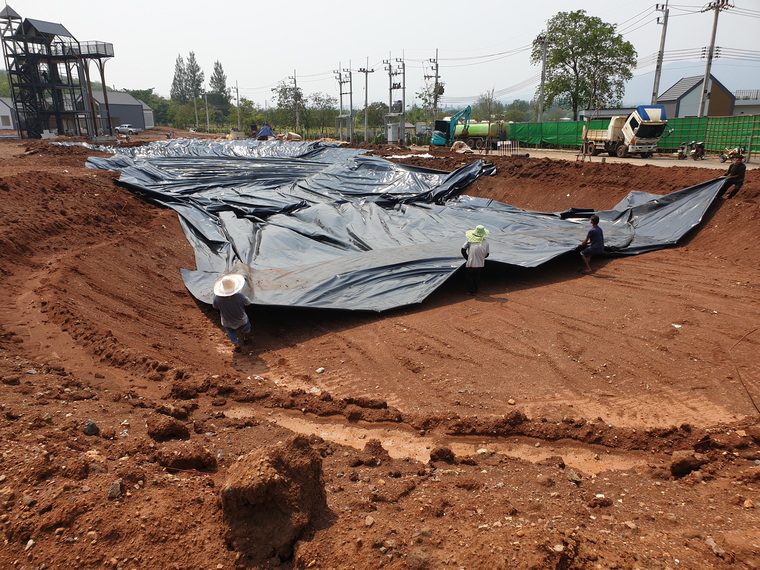 บ่อนี้ถูกปูด้วยพลาสติก LDPE ความหนา 0.5 มิลลิเมตร (500 ไมครอน) ค่ะ